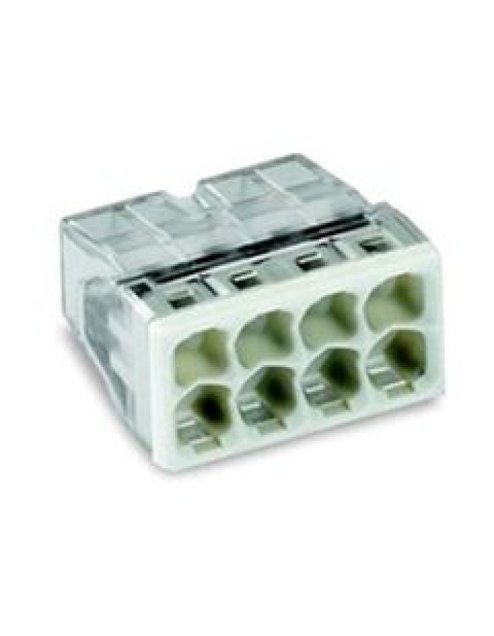 Клеммник фирмы WAGO для восьми медных одножильных проводников с сечением от 0,5 до 2,5 мм2 Клеммник позволят безопасно и быстро соединить провода между собой. Сечение провода: 0,5-2,5 мм2 Номинальный ток: 24А Номинальное напряжение: 450В