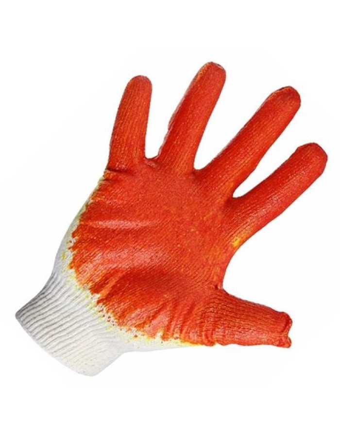 Перчатки с латексным покрытием, одинарным,  ХБ, 5нитей, 40-42гр., с оверлоком. 10 класс вязки, красного цвета. Применяются при строительных и ремонтных работах, в сельском хозяйстве, на промышленных предприятиях.