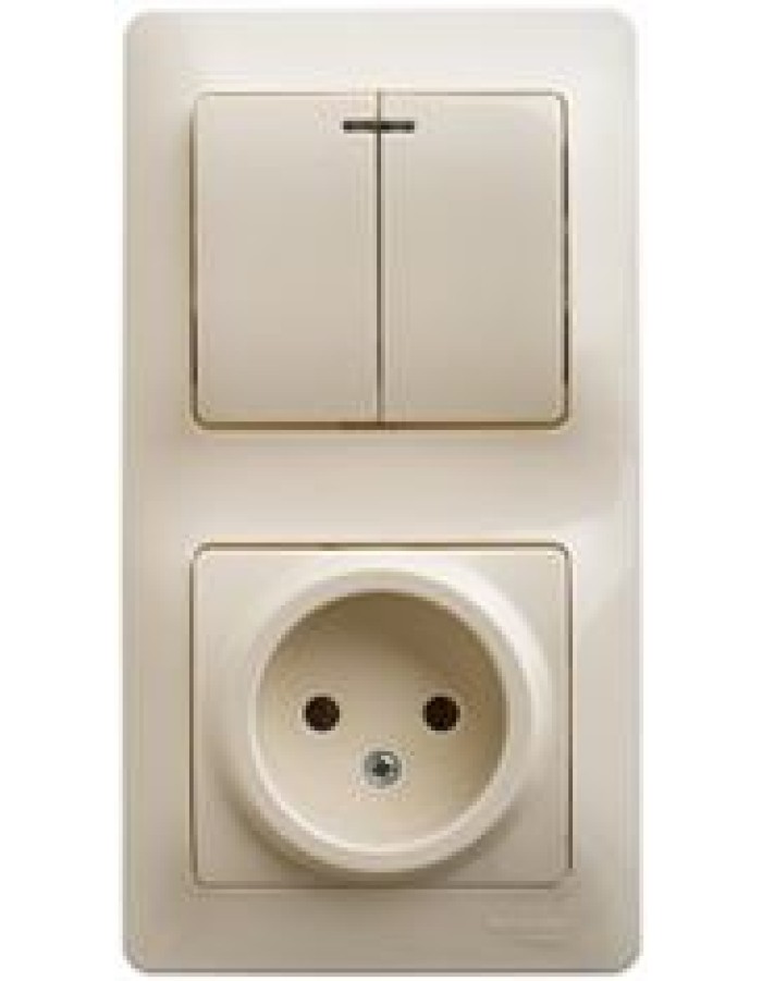 • GLOSSA БЛОК: РОЗЕТКА и 2-кл. ВЫКЛЮЧАТЕЛЬ с подсв. БЕЖЕВЫЙ